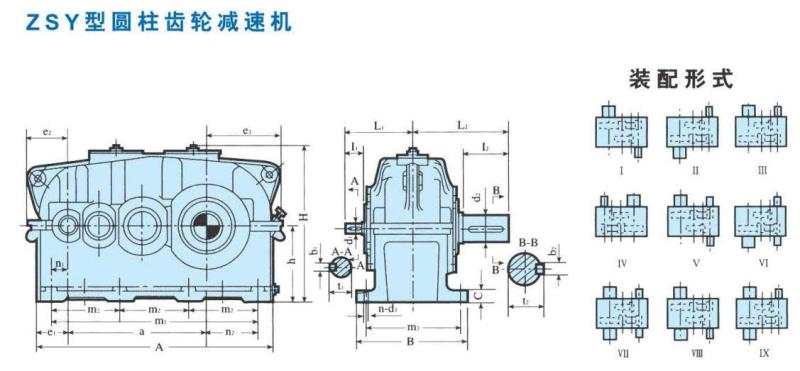 ZSY硬齒面減速機(jī)的安裝尺寸: